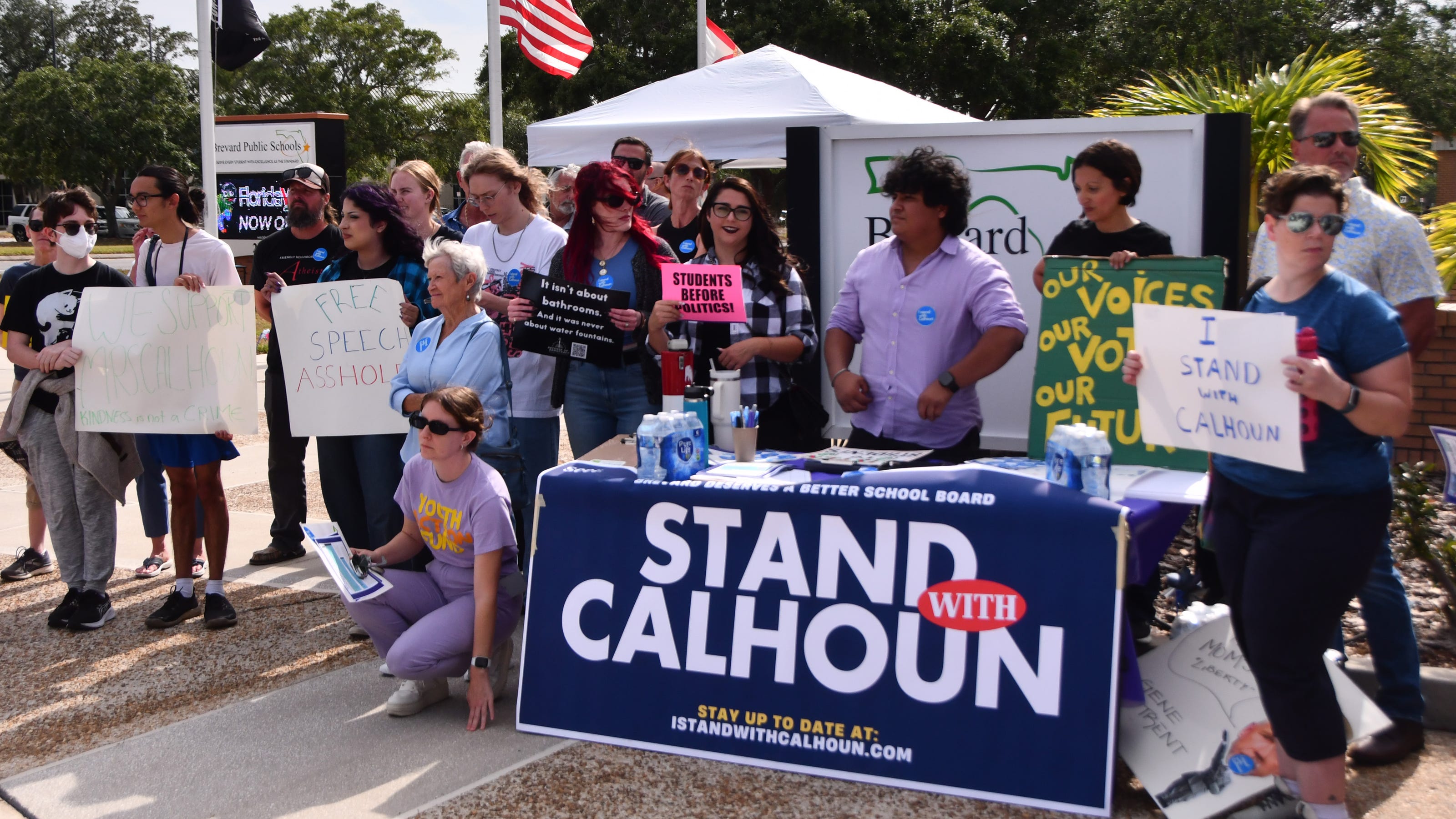 Melissa Calhoun exited an energized room to applause from the crowd about two hours into the three-hour meeting. Her departure came after the first round of public commenters, one in which every speaker except the chair of Brevard’s chapter of Moms for Liberty offered support for the veteran teacher.